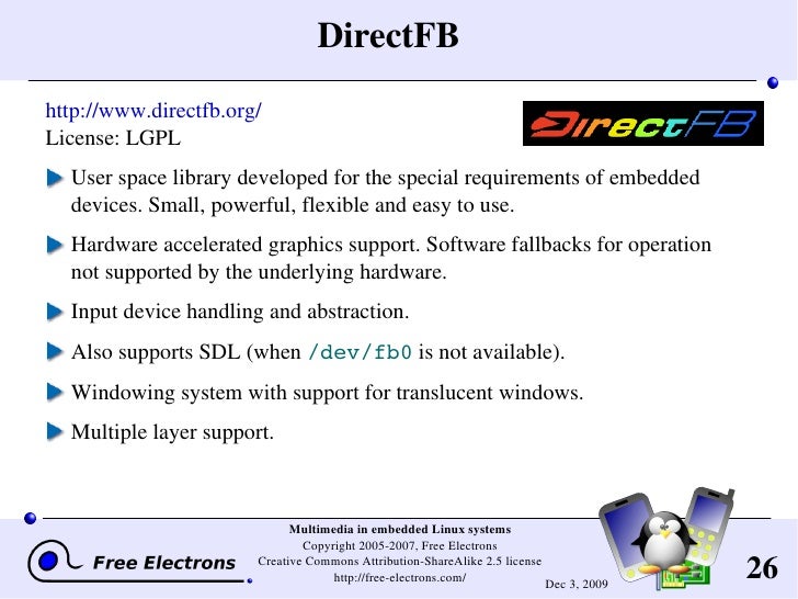 The evdev module of the Linux kernel gets an event and sends it to the Wayland compositor. This component allows users to build Graphics applications using the provided binaries. Finish multi application core. I want to use my host's graphics card in it but the virtual machine is only showing MB of video memory. Open sidebar Debian directfb Commits cfe Documentation and other data files will still use the regular prefix.